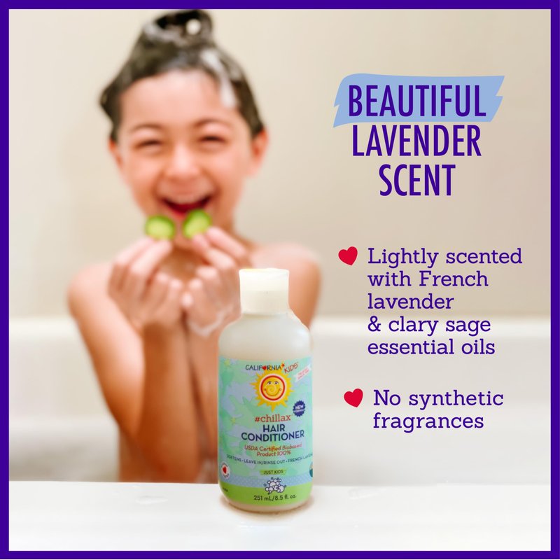 • BEAUTIFUL LAVENDER SCENT: No synthetic fragrances - this kids hair conditioner is scented with a light, relaxing blend of French lavender and clary sage essential oils.