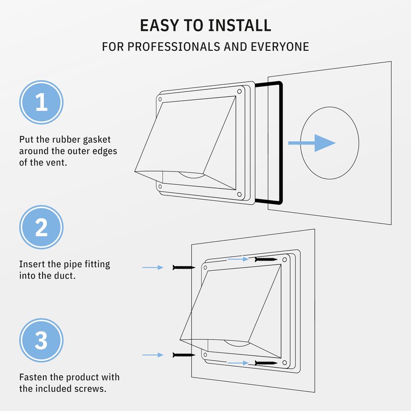 - 🛠️ EASY TO INSTALL Easy installation with standard tools perfect for hobbyists and professionals. Insert the socket into the ventilation pipe and fasten it to the wall with the screws provided. The gasket should fit very tight and will need some work to connect properly, please seen the informational graphics on your left.
