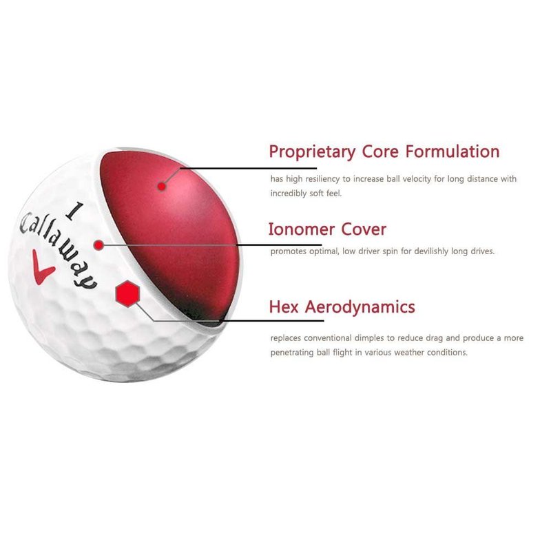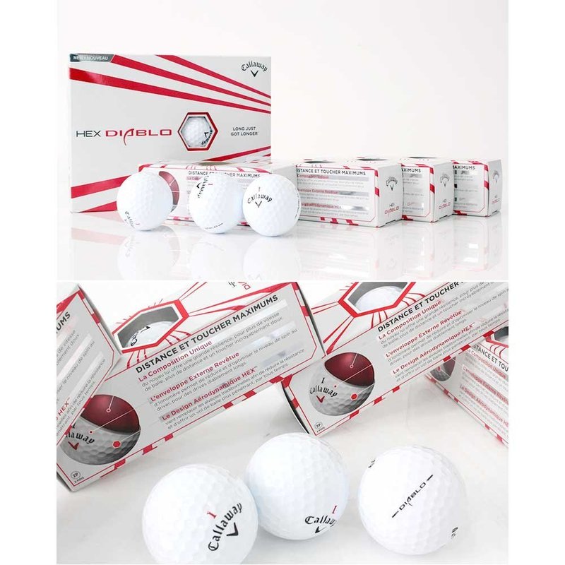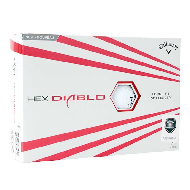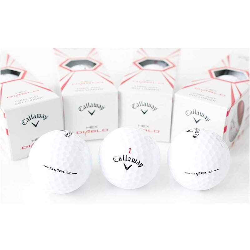 The two-piece Callaway Hex Diablo Golf Ball is a golf ball that's extremely long and ultra soft, combining the best of both worlds. Hex Diablo promotes lower driver spin so a player gains better distance and accuracy from their drives while maintaining the soft feel off the clubface that most golfers prefer. The re-engineered Hex aerodynamics increase lift at low speeds for additional distance while maintaining a proven, penetrating ball flight to hold its line in the wind. Specially designed to improve performance through greater speed and distance, the Callaway Golf Hex Diablo Golf Balls are true game changers. The ultra-thin Ionomer covering offers players reduced spin from the point of impact, making for better range and accuracy. Players will also enjoy quicker shots due to the proprietary core formulation that doesn't detract from comfortable swings. And the dimples of standard golf balls have been substituted with hexagons that increase aerodynamic performance. Hex Aerodynamics is designed to deliver lift at low speeds for distance while maintaining a penetrating ball flight to hold its line in the wind The S-Tech Core is built to reduce sidespin for more accuracy and it has a low compression for soft feel off the clubface. Duraspin outer layer improves trajectory and helps with a straighter shot 2-piece construction Unique design of the thin lonomer covering produces low spin from opening drives