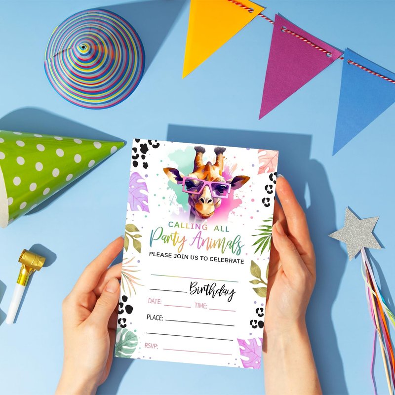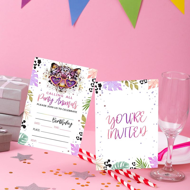 Calling All Party Animals - Animal Theme Birthday Invite for Girls Boys Teen Friends, Leopard Birthday Party Invitations Card, 20 Invitations With Envelopes, Birthday Party Supplies & Decorations -006