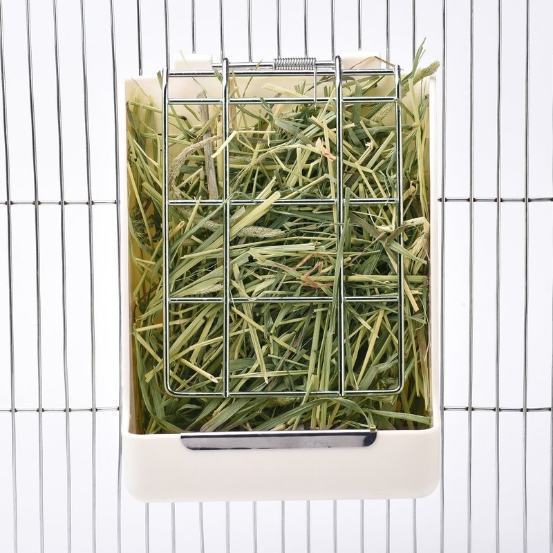 - PET-SAFE, PREMIUM QUALITY RABBIT HAY FEEDER - This hay feeder is made from plastic but we can assure you that it's not the type that can harm your beloved pets. All materials are premium-quality and BPA-free. The feeder design follows safety standards with the metal grate having a spring mechanism that provides enough tension to hold the hay but is not strong enough to accidentally trap your pets.