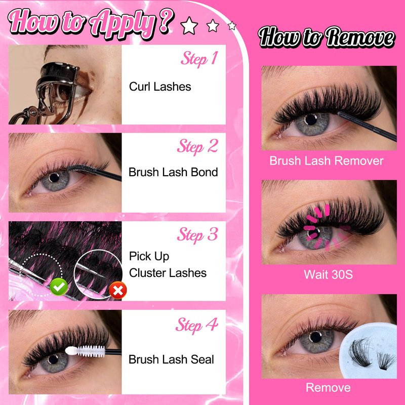 - 【Curled & Stylish Lash Clusters Kit】Thick individual eyelashes kit 80D+100D features D curl cluster eyelash extensions. Improved manufacturing process ensures stylized individual lashes with long-lasting d curl and natural-looking eyelash extension