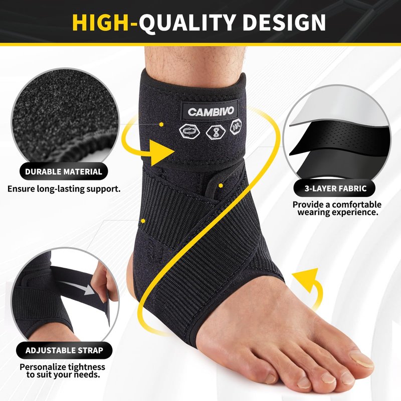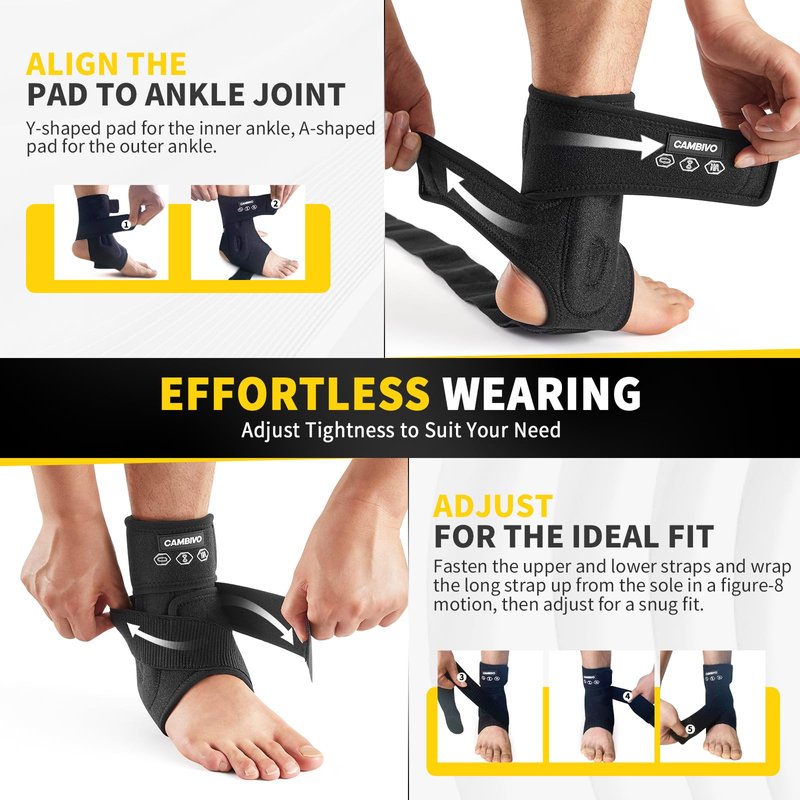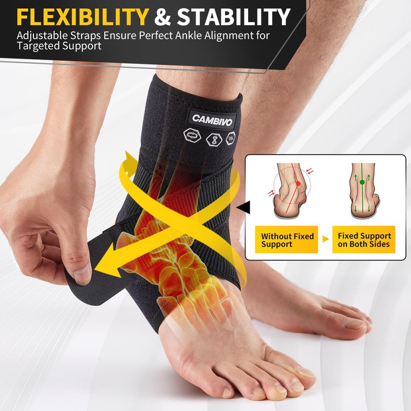 - Upgraded Support: CAMBIVO Ankle Brace offers exceptional support with highly adjustable straps, allowing you to customize the pressure, compression, and support for different areas of your foot and ankle. This superior adjustability provides stronger compression and targeted relief, helping to enhance blood circulation, alleviate pain, and accelerate recovery from a sprained ankle
