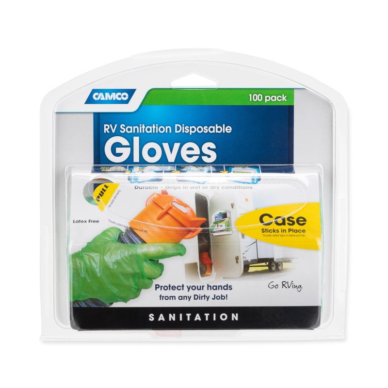 Camco Durable All Purpose RV and Camper Disposable Sanitation Gloves | Ideal in Wet or Dry Conditions | Green Non-Latex Gloves | 100 Pack (40285)