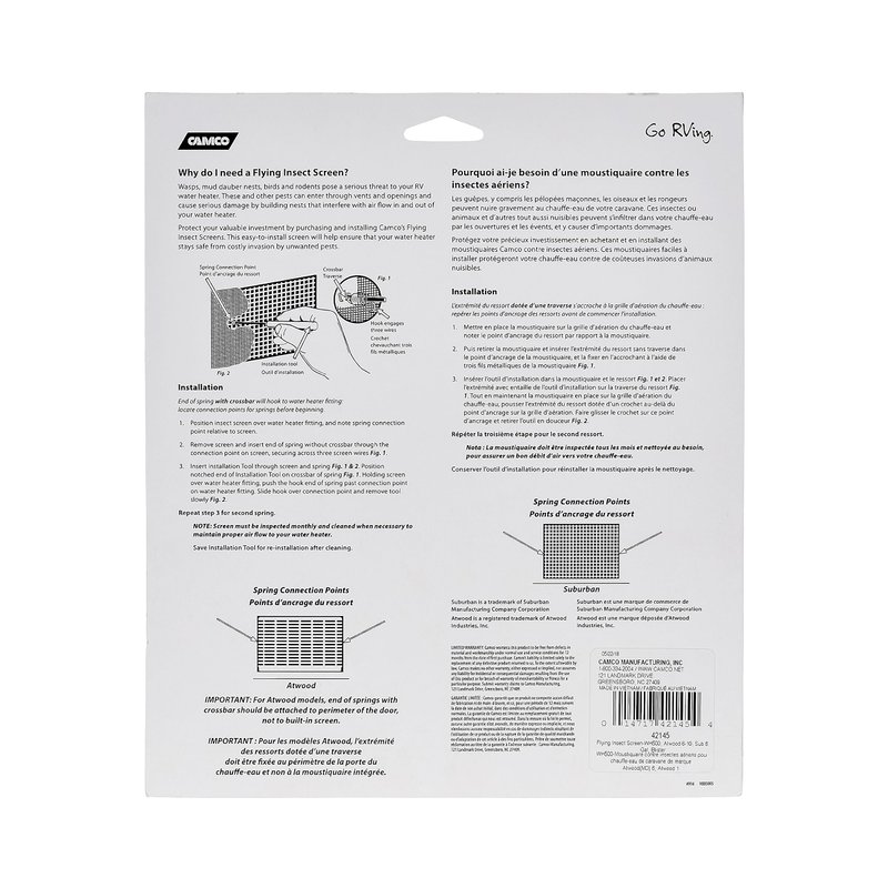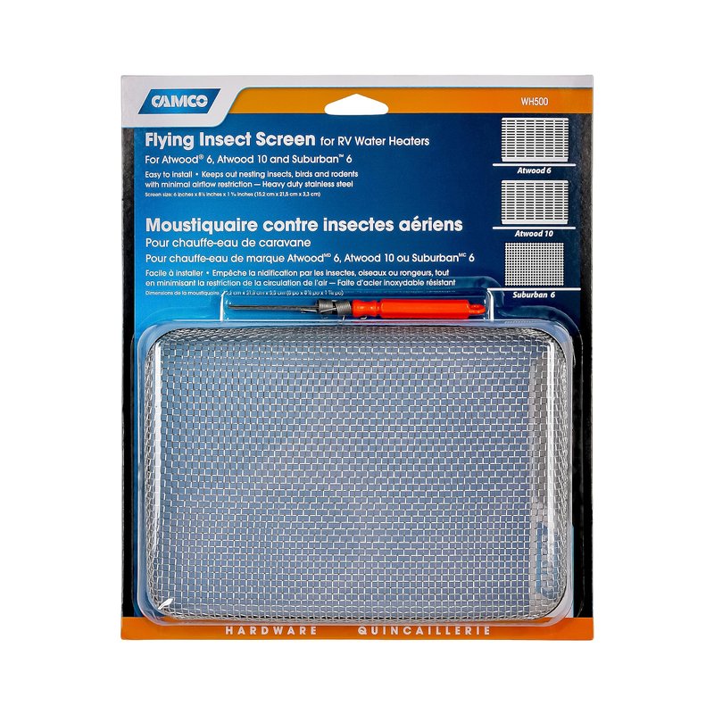 Camco Flying Insect Screen- Protects the Water Heater Vents from Flying Insect Nests, Stainless Steel Mesh, WH 500 -(42145),6" X 8.5" X 1.3" , White
