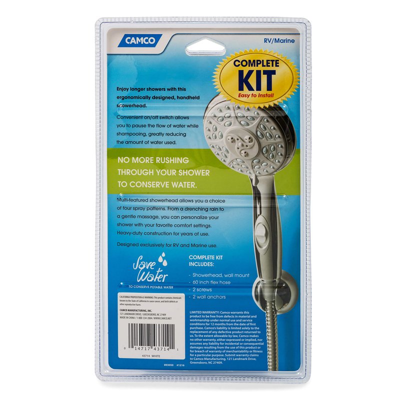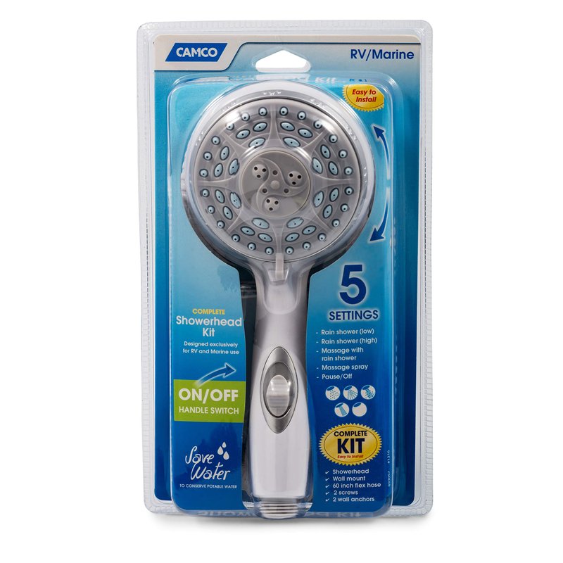 Camco RV/Marine Shower Head Kit | Conserve Water with Convenient On/Off Switch | Ergonomically Designed | White (43714)