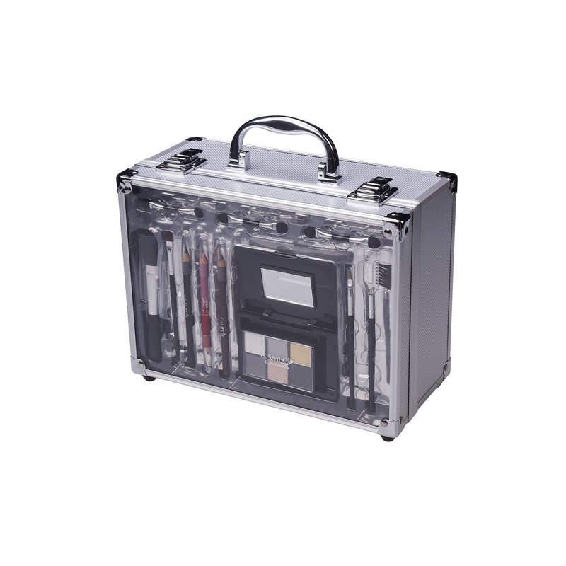 Cameo Carry All Trunk Makeup Kit with Reusable Aluminum Case Exclusive Holiday Gift Set, Black/White