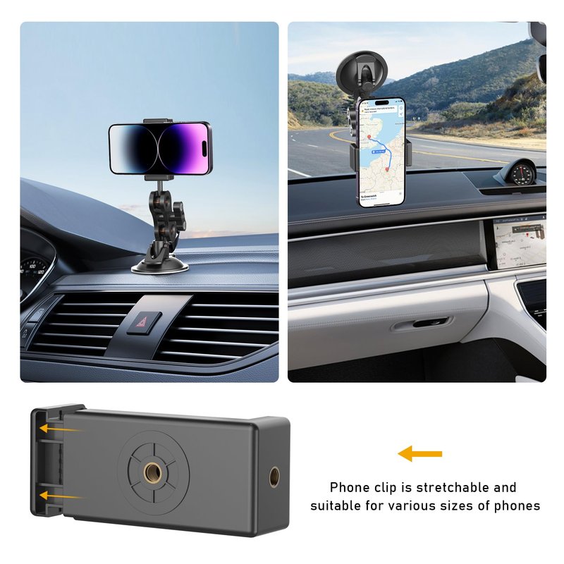 - 【Application scope】Used during travel photography, for driving navigation, for home and office use. Suction cup mount can be attached to the windshield, glassware, ceramic tiles, and any smooth and flat flat surface without holes, and will not leave any residue or scratches after disassembly.