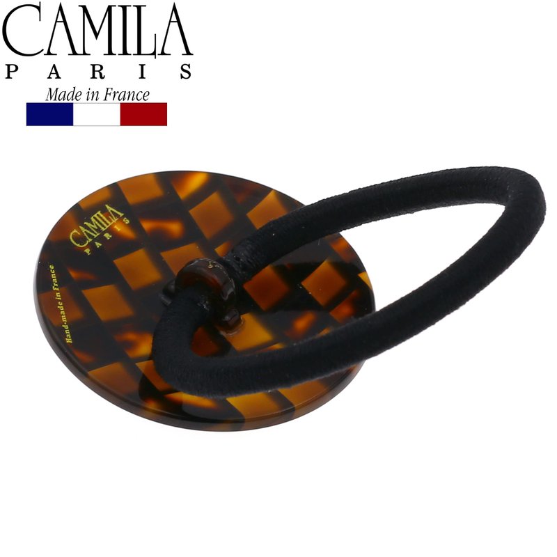 Camila Paris CP2962 French Hair Ponytail Holders Ties, Round, Handmade, Brown, Strong Hold Grip Elastic Band Hair Clips for Women, No Slip and Durable Styling Girls Hair Accessories, Made in France