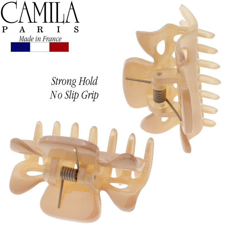 Camila Paris CP3047 French Hair Clip for Women, 1.5 inch Set of 2 Beige Girls Hair Claw Clips Jaw Fashion Durable Styling Hair Accessories for Women, Strong Hold No Slip Grip, Made in France