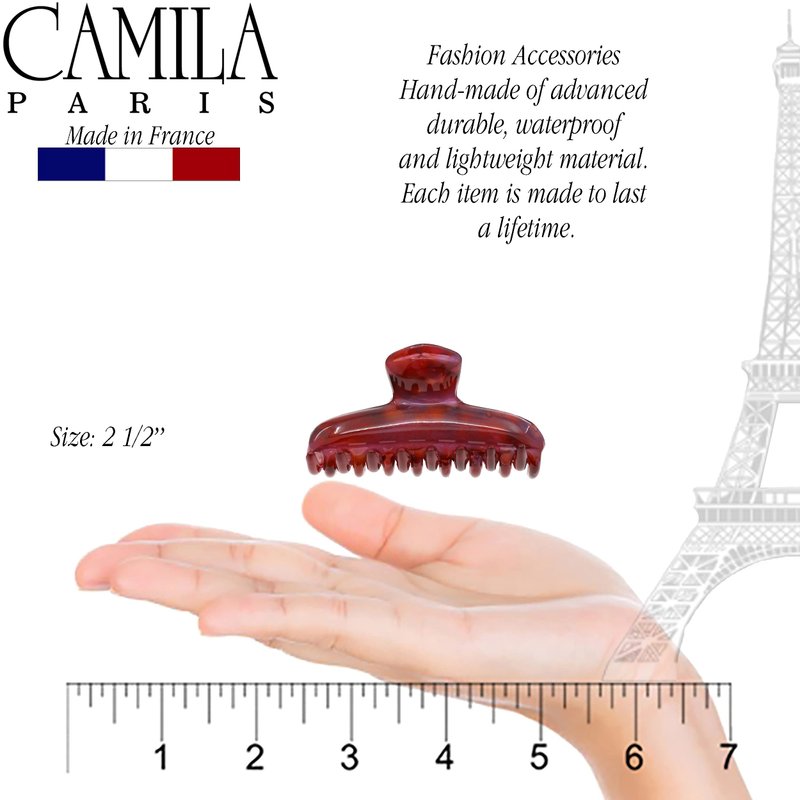 Camila Paris CP3319 Size 2.5 inch French Hair Accessories, Hair Claw Clamp Clips. No Pulling or Damage. Strong Hold No Slip Grip for Women and Durable Styling Girls Hair Ornaments. Made in France with Cellulose Acetate. With its beautiful and timeless designs featuring styles as hair barrettes for women, hair clips for girls, ponytail holders, hair banana clip, headbands, Hair pins, and more, decorated with unique designs, prints, patterns and finishes like black, tortoise shell, decoration and colors. Hand-made pieces are ideal for special occasions and include a large selection of hair ornaments for everyday use. We count with innovative features such as French Grip System ideal for fine hair, Spring Cover no visible hinge, Grip Link hinge replaced for a durable rubber band that holds better and maintain the due hair for all day. Camila Paris collection are for all hair types, fashion hair tools for black brown dark light brunette blondes red heads; use for adults with curly wavy straight frizzy fine thin long medium mid back shoulder length hairstyle; cutting curling coloring drying or straightening. Camila Paris 20 years of professional experience and products knowledge, a high quality hair ornaments line. A staple of excellence in the hair accesories industry