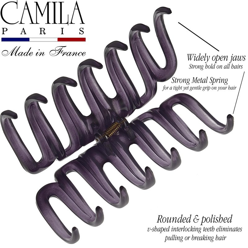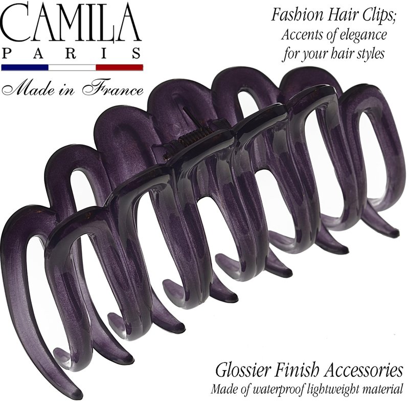 Camila Paris CP3563 4 Inch French Fashion Hair Accessories, Hair Claw Clips. No Pulling or Damage. Strong Hold No Slip Grip for Women. Durable Styling Girls Hair Clip. Made in France with Cellulose Acetate. 4 1-2 In, Purple. With its beautiful and timeless designs featuring styles as hair barrettes for women, hair clips for girls, ponytail holders, hair banana clip, headbands, Hair pins, and more, decorated with unique designs, prints, patterns and finishes like Purple, Purple, decoration and colors. Hand-made pieces are ideal for special occasions and include a Small selection of hair ornaments for everyday use. We count with innovative features such as French Grip System ideal for fine hair, Spring Cover no visible hinge, Grip Link hinge replaced for a durable rubber band that holds better and maintain the due hair for all day. Camila Paris collection are for all hair types, fashion hair tools for Purple brown dark light brunette blondes red heads; use for adults with curly wavy straight frizzy fine thin long medium mid back shoulder length hairstyle; cutting curling coloring drying or straightening. Camila Paris 20 years of professional experience and products knowledge, a high quality hair ornaments line. A staple of excellence in the hair accesories industry