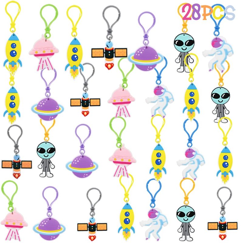 - Value Package: Our Valentine's Day party package includes 28 PVC space theme keychains for children. The space keychain has 6 different lovely designs. This lovely set also comes with 28 Valentine's Day cards in 4 designs.