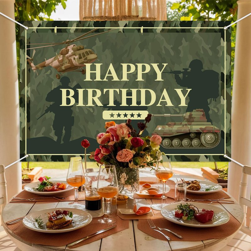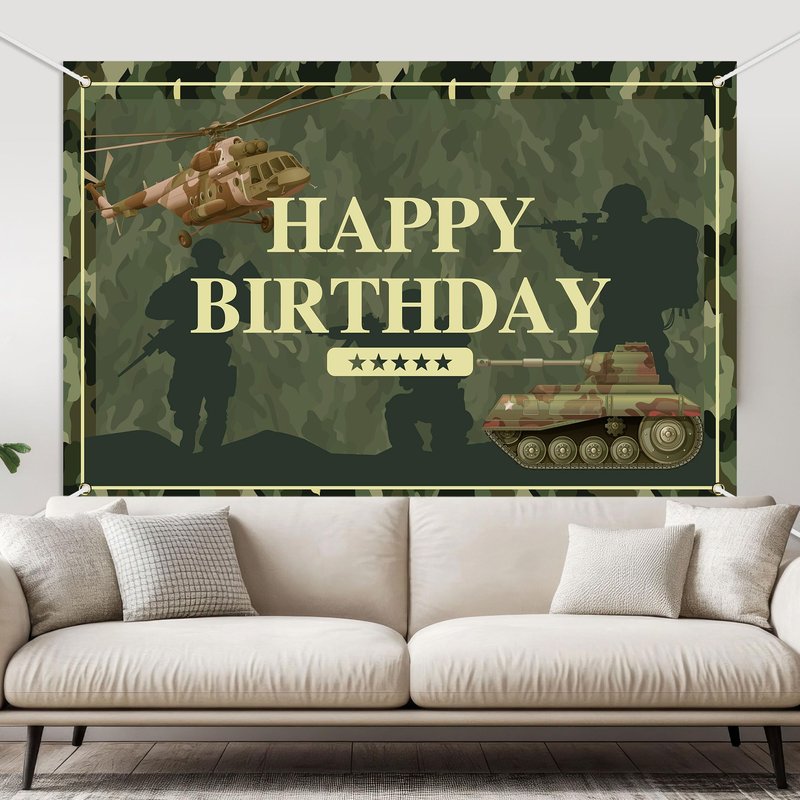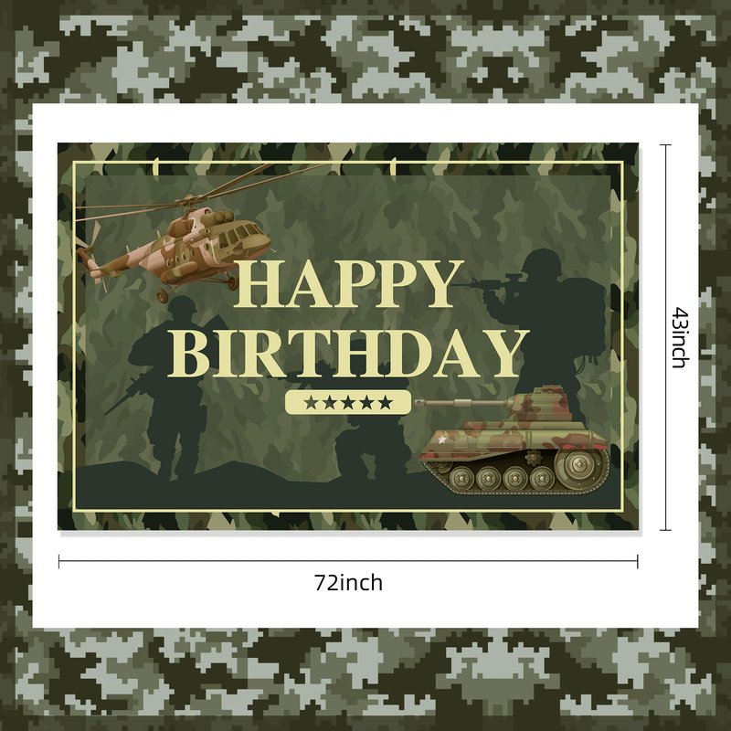 - Suitable scene:This camouflage birthday decoration is perfect for decorating your military-themed birthday party, camouflage-themed party, and other patriotic-themed birthday events. The classic camouflage background is not only full of the atmosphere of military life, but also has the silhouettes of soldiers, which is very fascinating, you can hang it on the wall, door, fireplace, or anywhere you want. It will add the perfect touch to your birthday party and will surely impress everyone.