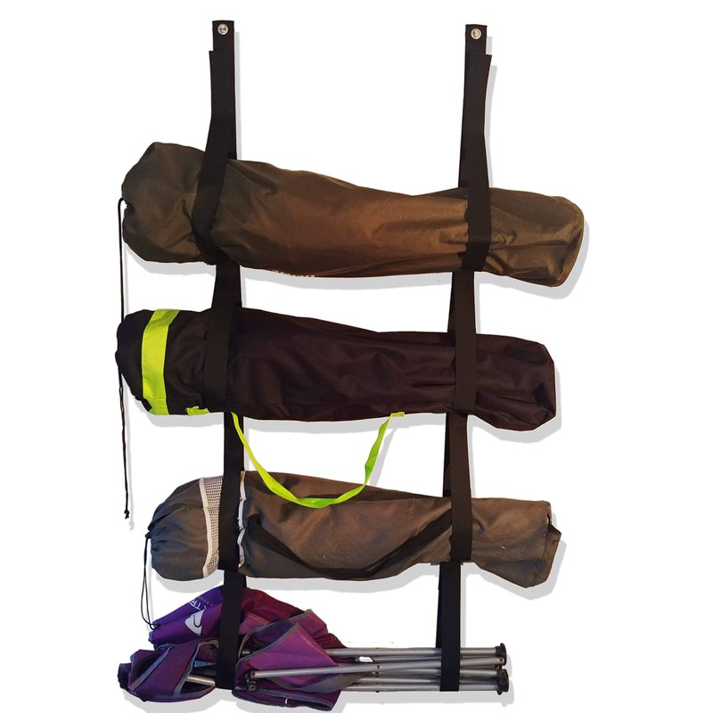 Camping Chair Wall Storage for Garage. This Organizer System Holds 4 chairs. Simple Easy Wall Mount for Garage Organization.