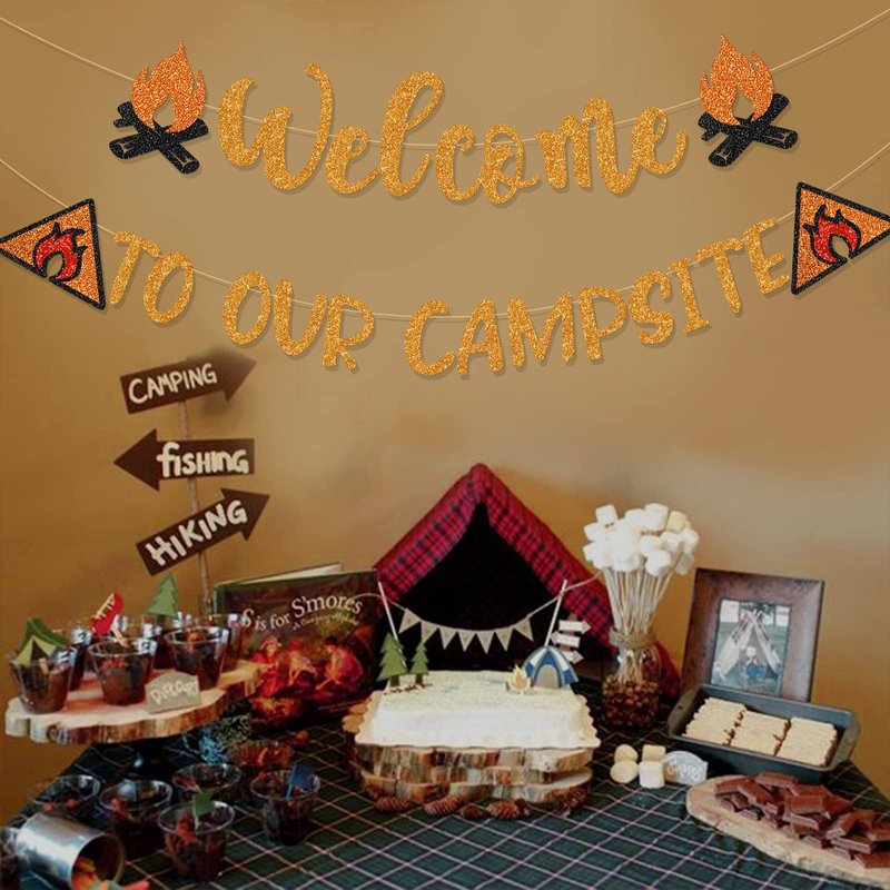 Camping Party Decorations, Welcome to Our Campsite Banner Campsite Decorations, Camping Birthday Party Supplies, Camping Theme Classroom Decor Camping Themed Party Decorations (camp)
