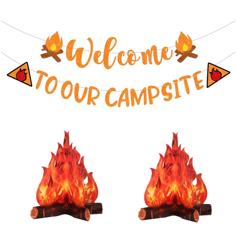 • Pre-assembled Camping Party Decorations:Package include 1 pcs welcome to our campsite banner, 2 pcs 3D Campfire, perfect for camp party decoration