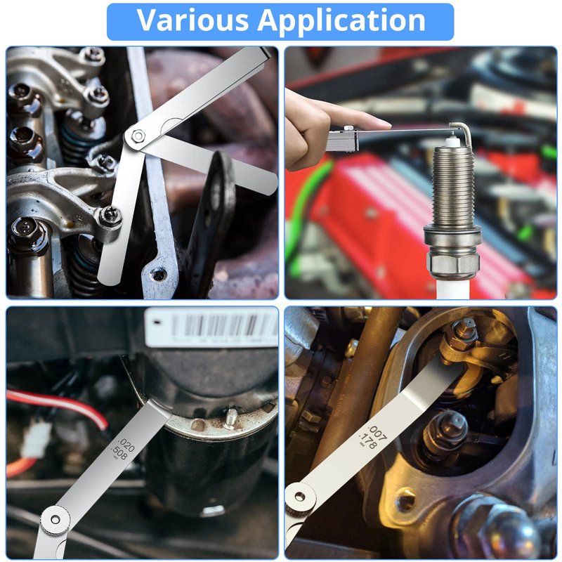 - 【 360-degree Swivel Design 】The Feeler Gauge Set allows you to unfold or fold them easily and carry them with you. You could disassembled into a separate feeler gauge to use by adjusting the screw.Metal fastening screws,and durable.
