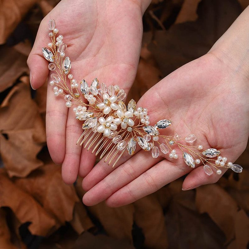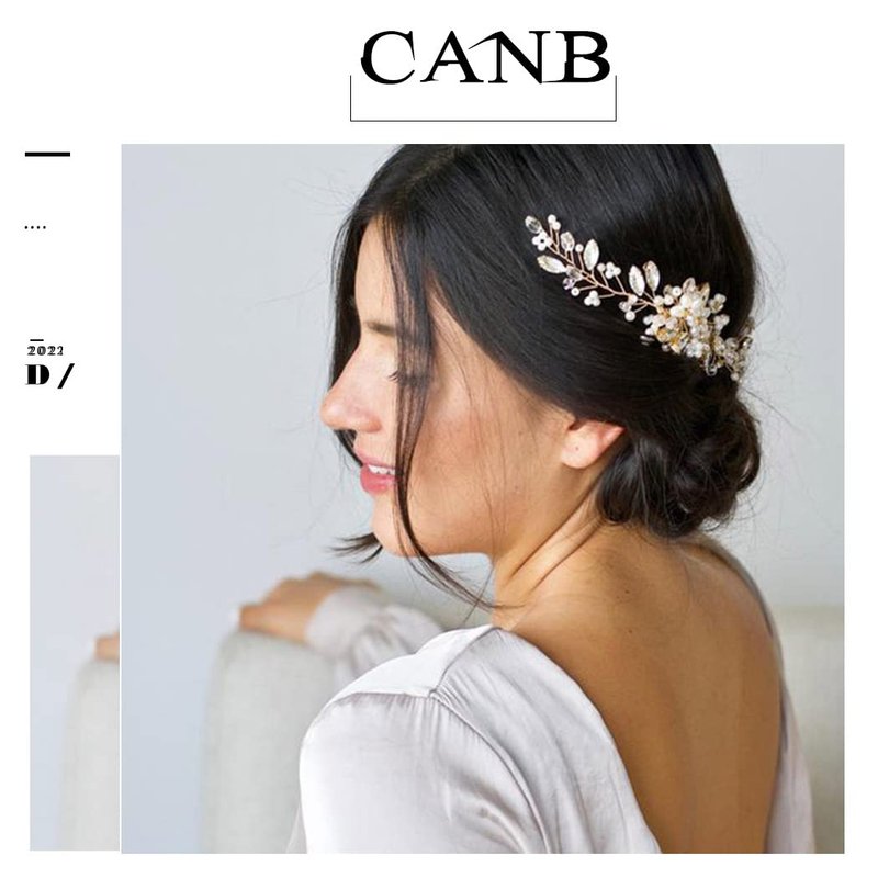 CanB Bride Pearl Hair Comb Flower Silver Wedding Leaf Crystal Bridal Headpieces bridesmaid Head Plece Flower Girl Rhinestone Hair Jewelry Accessories for Women and Girls (Gold)