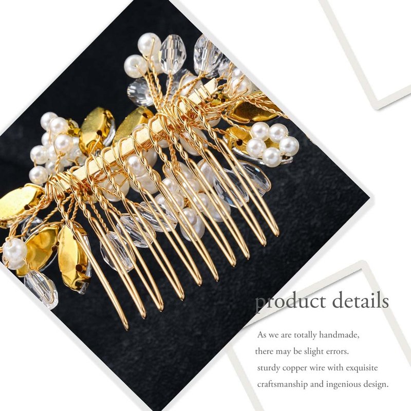 - Elegant gold pearl hair decoration 100% handmade ,the size is approx 2.4*7.8 inches. As we are totally handmade, there may be slight errors.