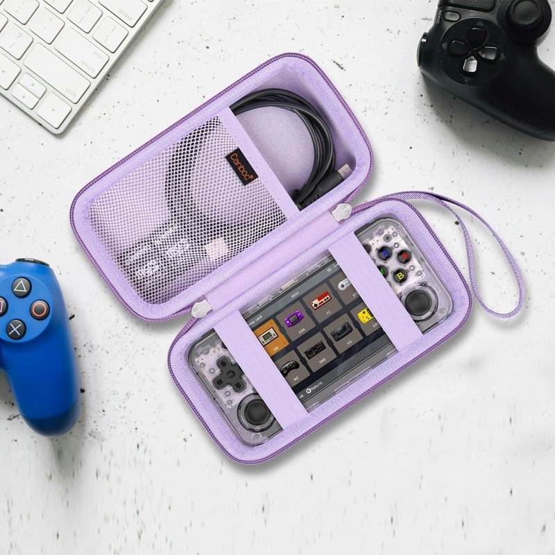 Canboc Hard Carrying Case Compatible with RG35XX H/ RG40XX H Retro Handheld Game Console, Video Gaming Console Storage Box, Mesh Pocket fits Cable, SD Card, Purple (Case Only)
