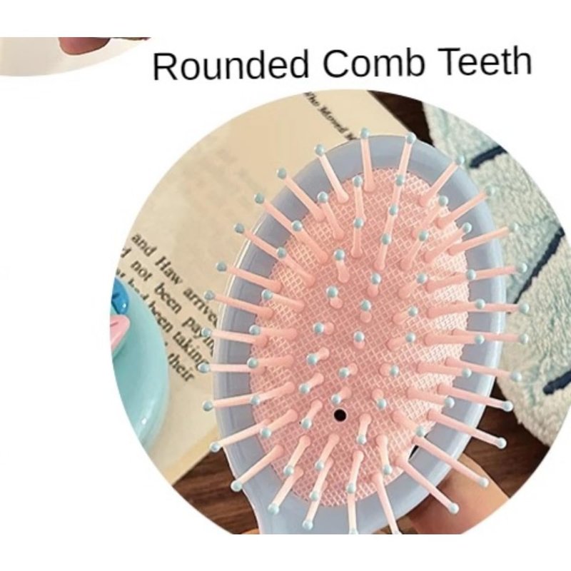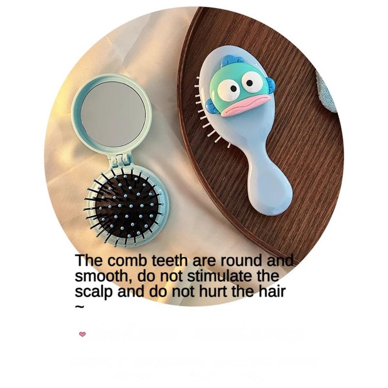 Candy Coloer Cute Cartoon Air Cushion Comb Set for Adults & Kids Hair - Detangler Brush for Natural, Curly, Straight, Wet or Dry Hair, Foldable Mirror Included (Blue (Fold + Hand))