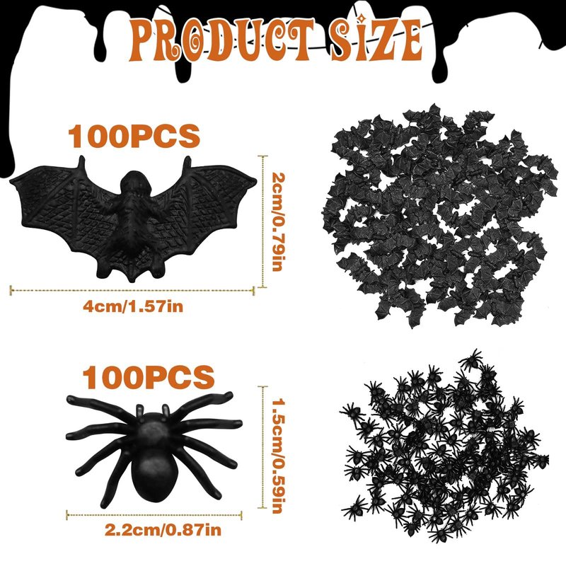 CANIPHA 200Pcs Mini Spiders Bats Halloween Decorations, Include Plastic Bats and Fake Spiders, Creepy Scary Prank Toys Fake Bats Spider Hallowmas Prank Props Supplies for Kid Gift Joke Toy Home Decor