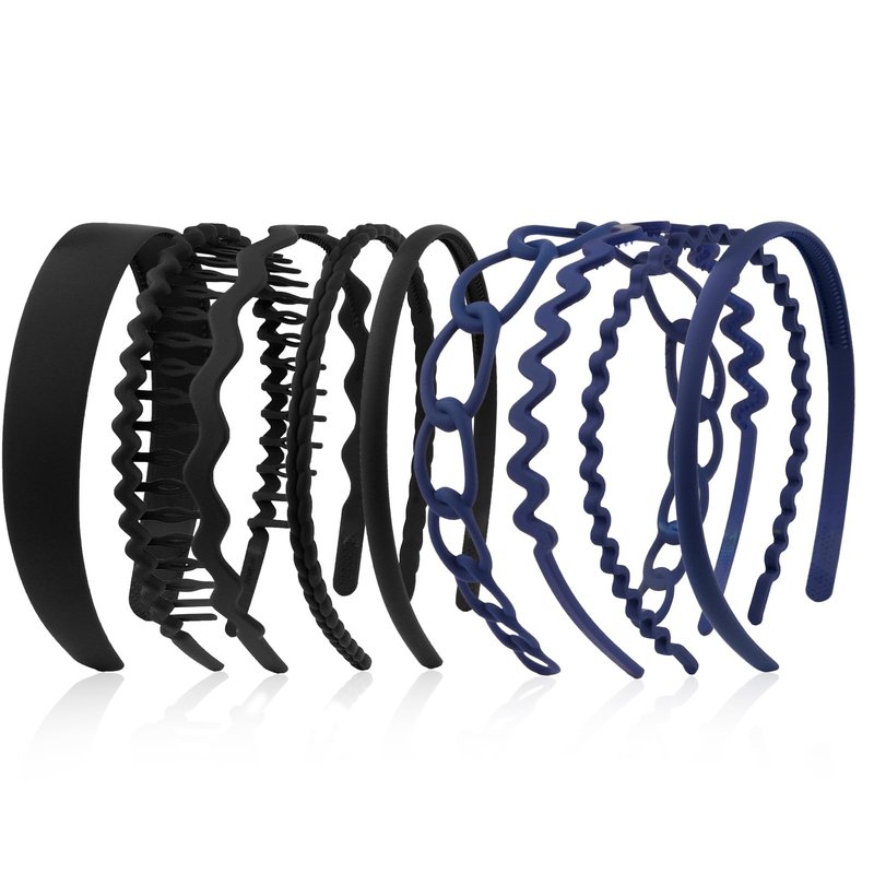 - Package Included:There are 7 pcs of skinny plastic headbands and 2 pcs wide plastic headbands,available in 8 types with teeth,come with black and navy 2 color.