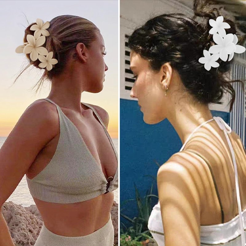 - 🌺 Hawaiian Flower Claw Clips: The claw clip with Plumeria design is full of Hawaiian flavor, wear this flower claw clip, spend your wonderful summer beach time!