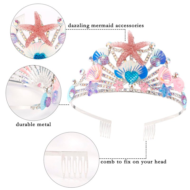 - 🧜🏻♀️Charming Crown: This mermaid crown is colorful and bright, with distinct ocean elements, cute shells, starfish,mermaid tails,scales,and more, make you a beautiful mermaid princess.