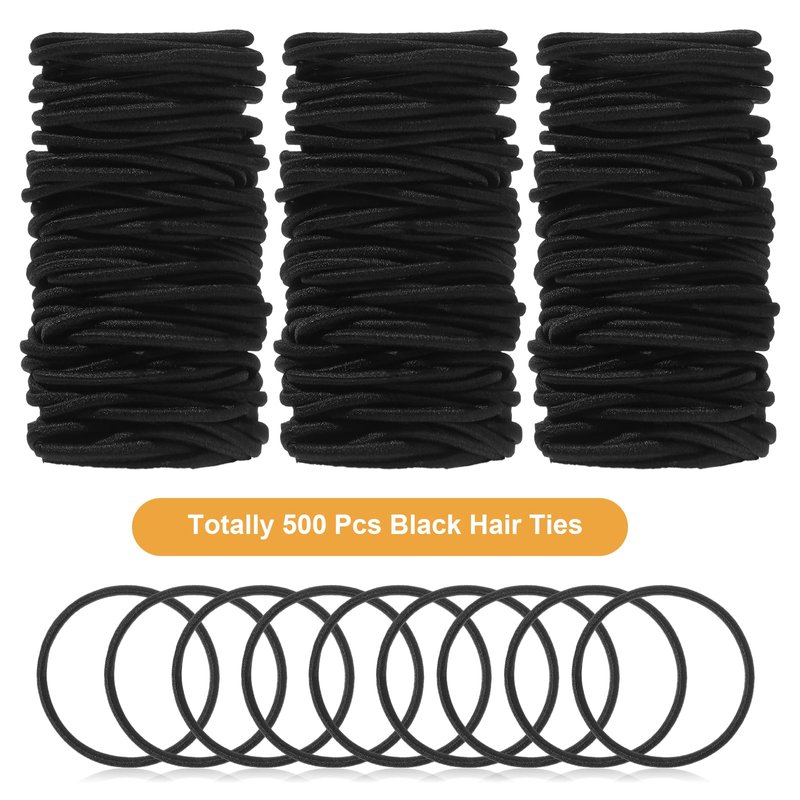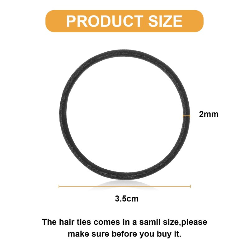Features: Good for hair: These non metal elastic hairbands, made with good elastic rubber material, are good for medium length hair, don't worry about your hair. Specifications: Material: rubber Color: black Size: (about) Thickness: 0.08 inch/ 2 mm Diameter: 1.38 inches/ 3.5 cm Package includes: 500 x Black hair ties Notes: Manual measurement, please allow slight errors on size. The color may exist a slight difference due to different screen displays.