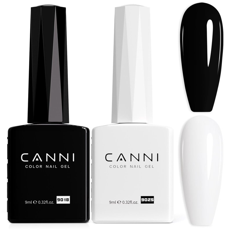 CANNI 2Pcs Hema-Free Black White Gel Nail Polish Set- Black and White Gel Polish Kit, Soak Off LED Nail Gel Manicure Kit DIY at Home Salon Gifts for Women Girls