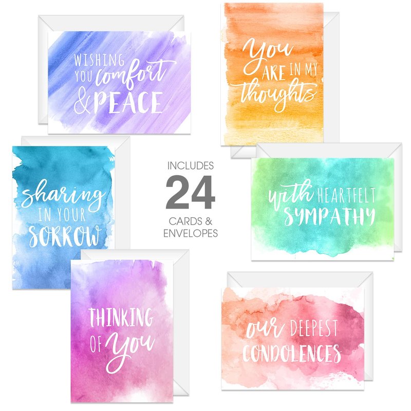 Canopy Street Watercolor Sympathy Cards / 24 Comfort And Peace Note Cards / 6 Colorful Designs With Blank White Envelopes / 4 5/8" x 6 1/4" Thinking Of You Greeting Cards