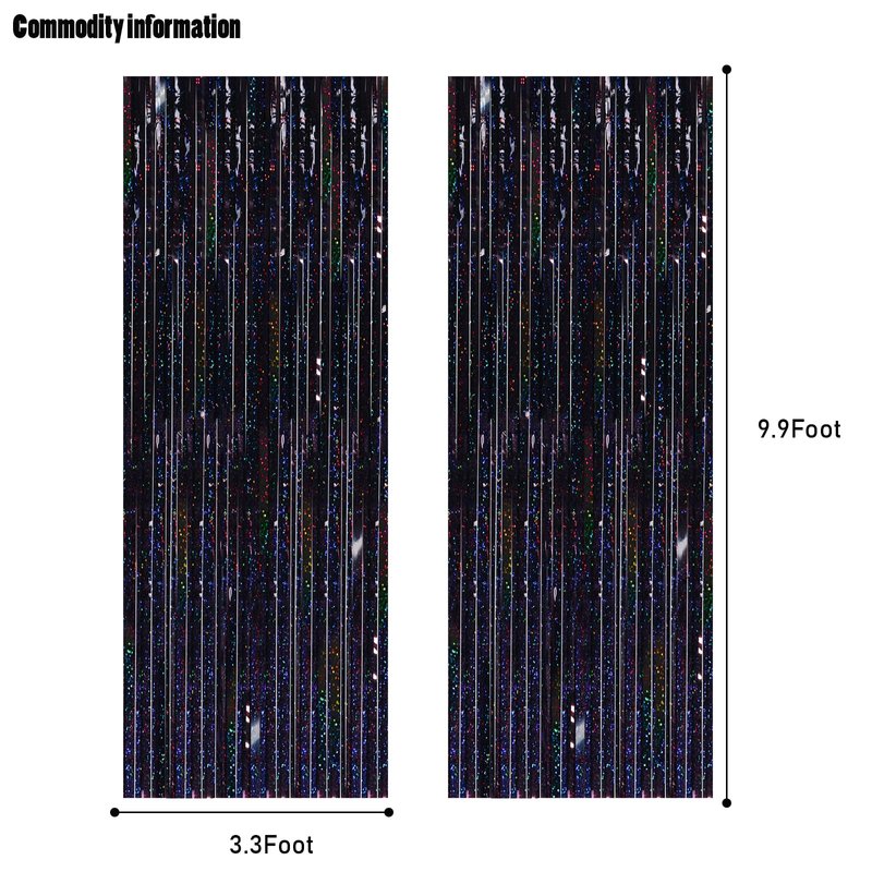 - 🎉PACKAGE INCLUDED : 2 pack of black foil fringe curtains, the size of each tinsel curtain is 3.3 ft x 8.2 ft, enough length for hanging on a door or covering a wall fully, suitable for any parties.