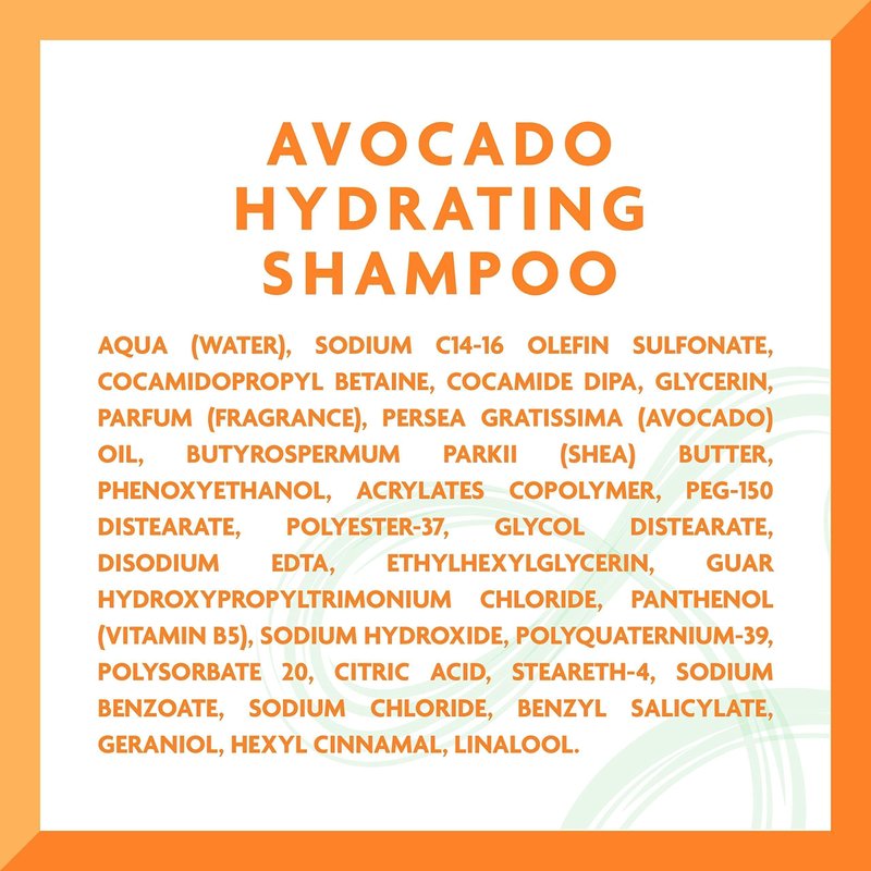 - AVOCADO & SHEA BUTTER: duo of hydrating natural ingredients removes build-up and moisturizes scalp