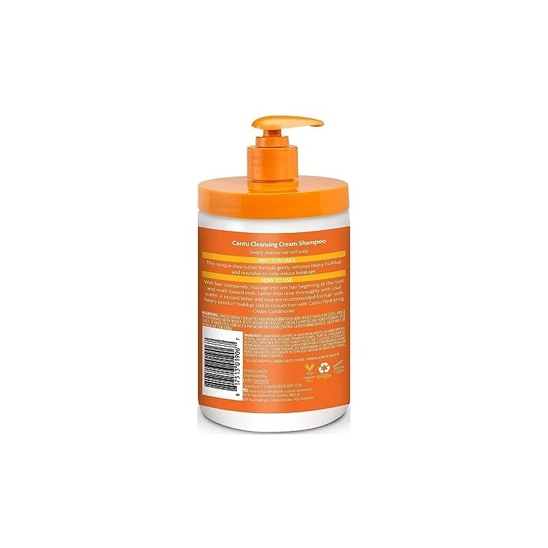 Cantu Shea Butter natural hair Cleansing cream Shampoo, sulfate-free formula gently cleanses and moisturizes hair, helping to reduce breakage during shampooing. Rich lather removes heavy build-up. Gentle formula helps protect against breakage. Ingredients:Water (Aqua, Eau), Sodium Lauroyl Methyl Isethionate, Cocamidopropyl Betaine, Acrylates Copolymer, Sodium Lauroyl Sarcosinate, PEG/PPG 120/10 Trimethylolpropanetriolate, Laureth-2, Cocamide MIPA, Citric Acid, Glycerin, Butyrospermum Parkii (Shea) Butter, Panthenol, Fragrance (Parfum), Polyester-11, Glycol Disterate, Tetrasodium Edta, Sodium Hydroxide, PPG-20 Methyl Glucose Ether, Polyquaternium-10, Sodium PCA, Phenoxyethanol, Ethylhexylglycerin.