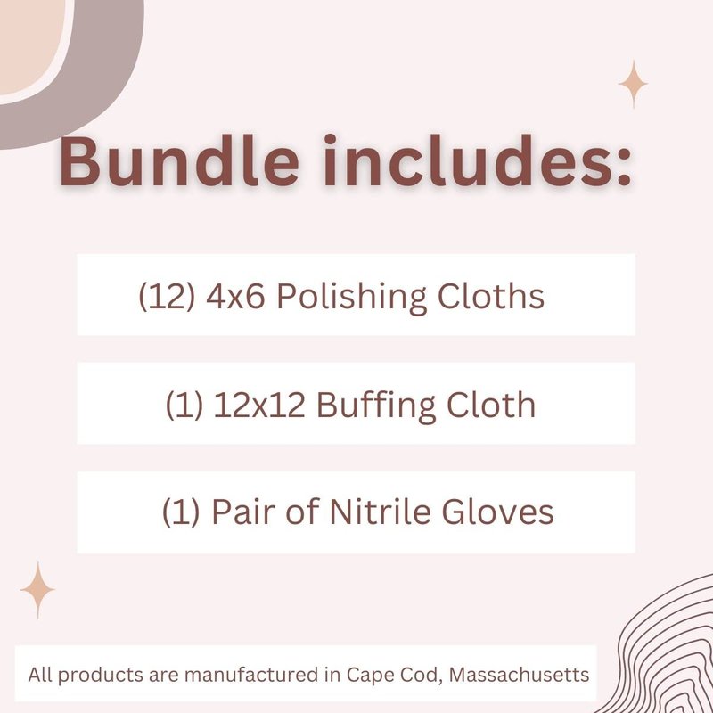 - Made in the USA: Each bundle tin contains (12) 4x6 polishing cloths, (1) 12x12 Buffing Cloth, and (1) pair of nitrile gloves. All products are manufactured in Cape Cod, Massachusetts.