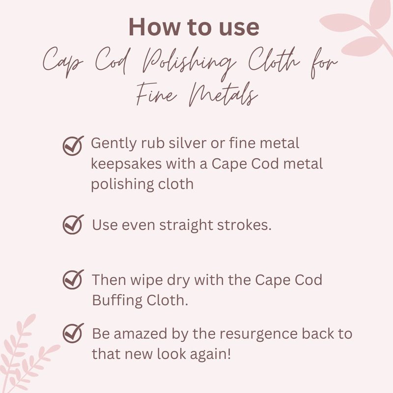 - How to Use: Gently rub silver jewelry or fine metal keepsakes with a Cape Cod Polishing Cloth briskly, but not hard, using even straight strokes. Then wipe dry with the Cape Cod buffing cloth and be amazed by the resurgence back to that new look again.