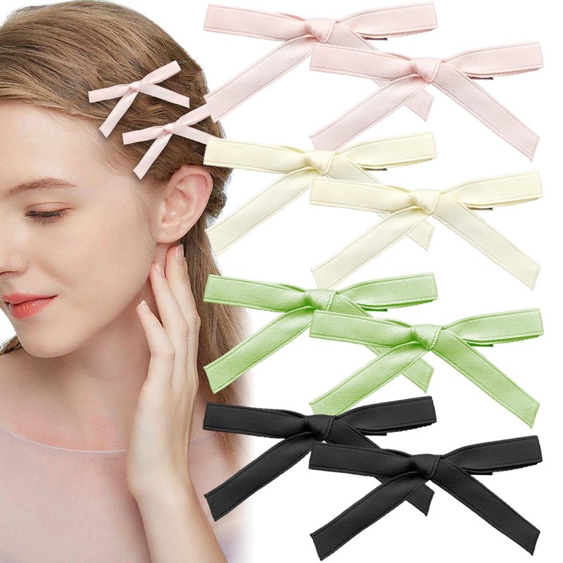 - 【EASY TO USE】- Bowknot hairpin, non-slip fully lined alligator clips. We care about safety and comfort. Each bow is fully covered with satin ribbon, so it won't damage your hair. The clip base has a strong grip and is lightweight. They can stay in place in both fine and coarse hair, and keep hair out of your face.