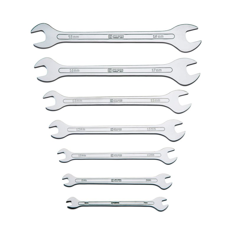 Capri Tools Super-Thin Open End Wrench Set, Metric, 6 to 19 mm, 7-Piece (11850-7MRK)