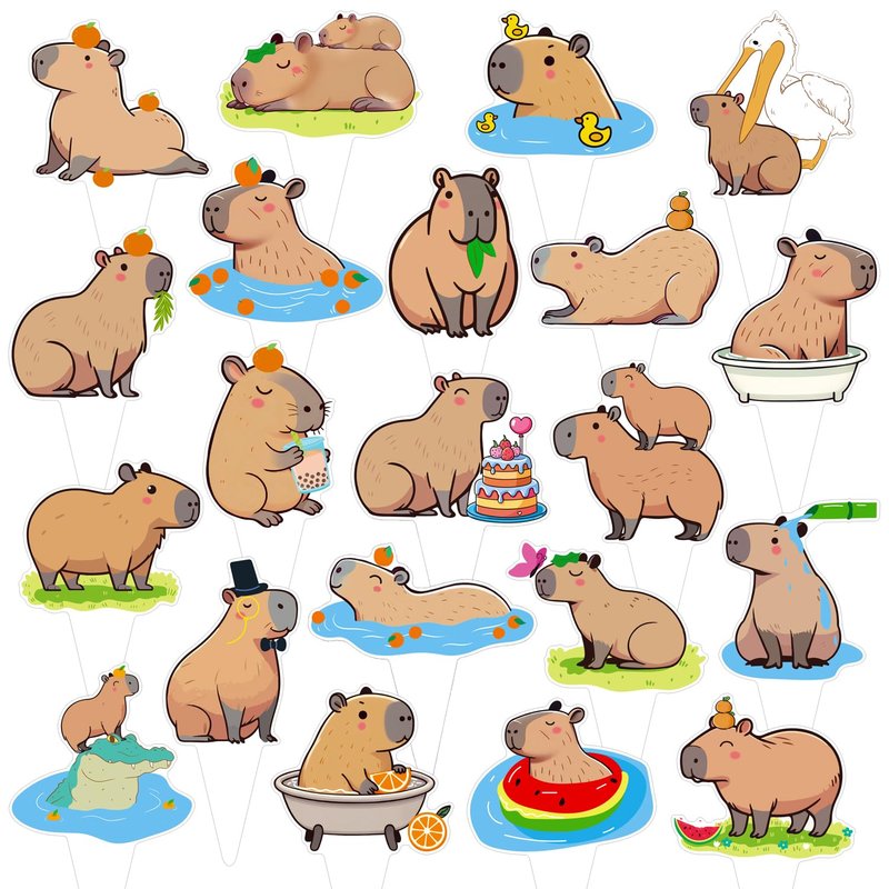 - Contain:You will receive 48pcs capybara cupcake toppers, each size of the capybara cake decoration is about 2.3×2.4 inches. 24 Different capybara styles and each pattern has 2pcs. Enough quality for your capybara animals party needs