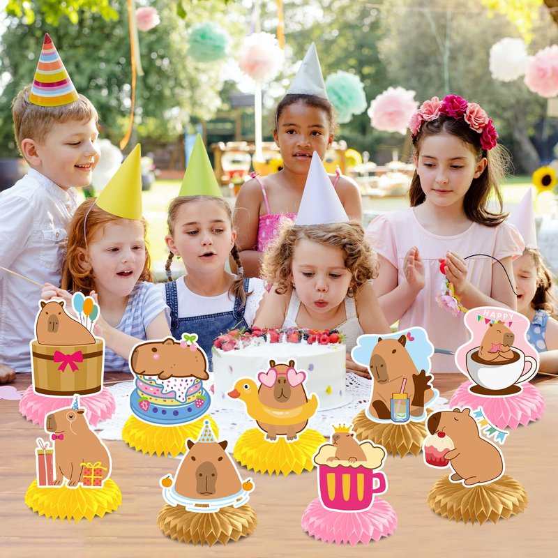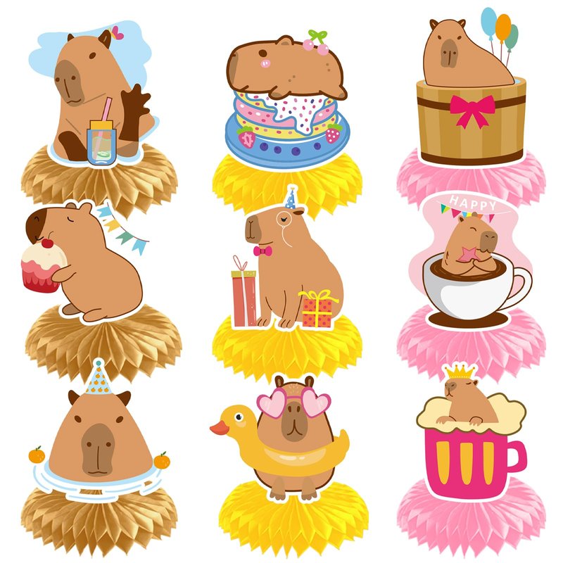 - This capybara honeycomb centerpieces birthday decorations are made of thick high-quality cardstock and paper while it is non-toxic, no fade and durable. The capybara party decorations set will create a festive atmosphere for your party.