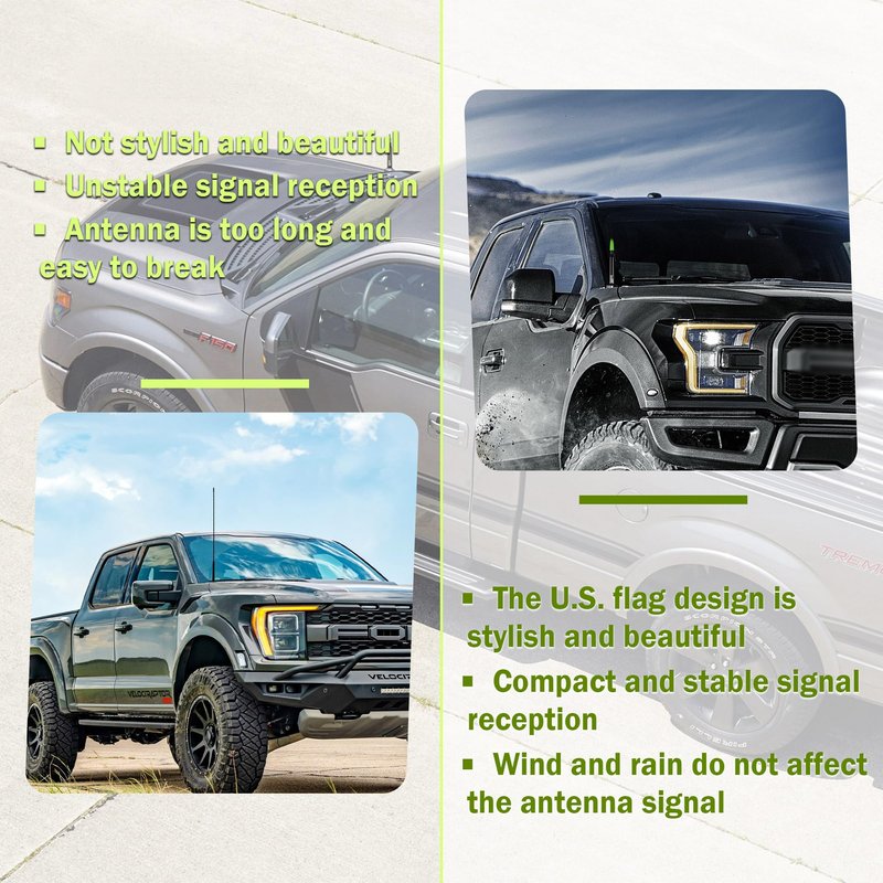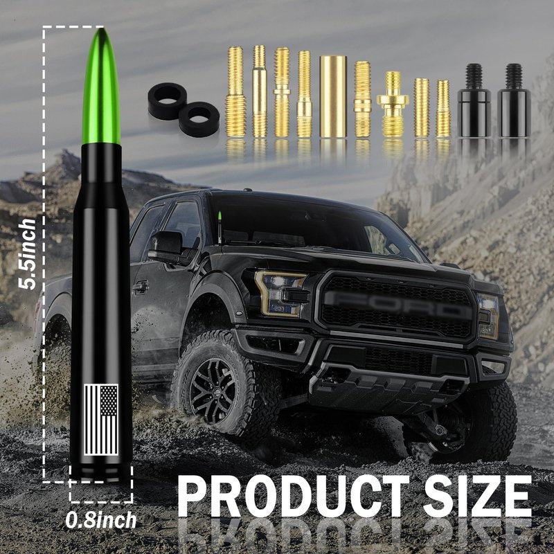 - 🚗 American flag design: The design of the American flag reflects the perfect connotation of patriotism and is a delicate detail that can be These high-quality truck bullet antennas will add some eye-catching luster to your riding!