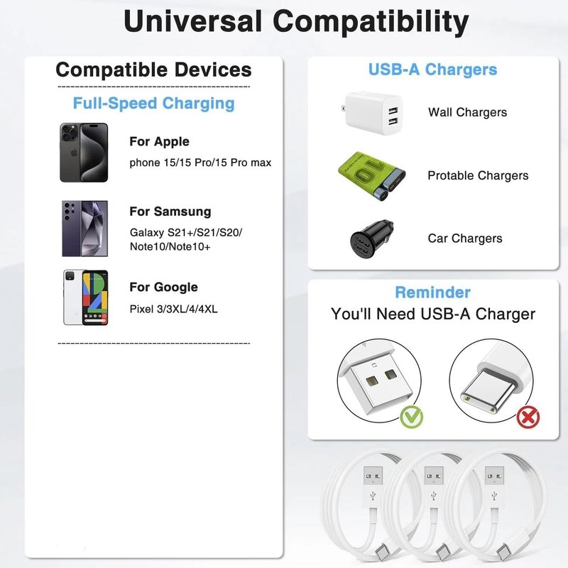 - 【Fast Charging and Smooth Data Transfer】: This USB A to USB C Charging Cable for iPhone 16 15 Car Charger made with reinforced joint design and the charger cable supports safe charging and stable data transfer which it can better and quick charge your device.