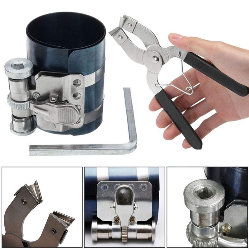 Car Engine Piston Ring Installer Removal Kit Compressor Tool & Adjustable Piston Installer Plier