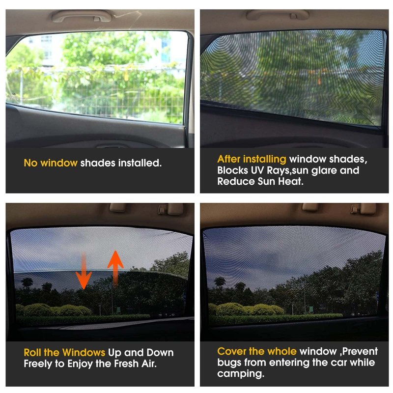 - 【Breathe Natural Fresh Air】Because the Stretchy nylon mesh sunshade puts on the door frame, so you can still open or close the windows according to your needs and enjoy a fresh air when family car camping.
