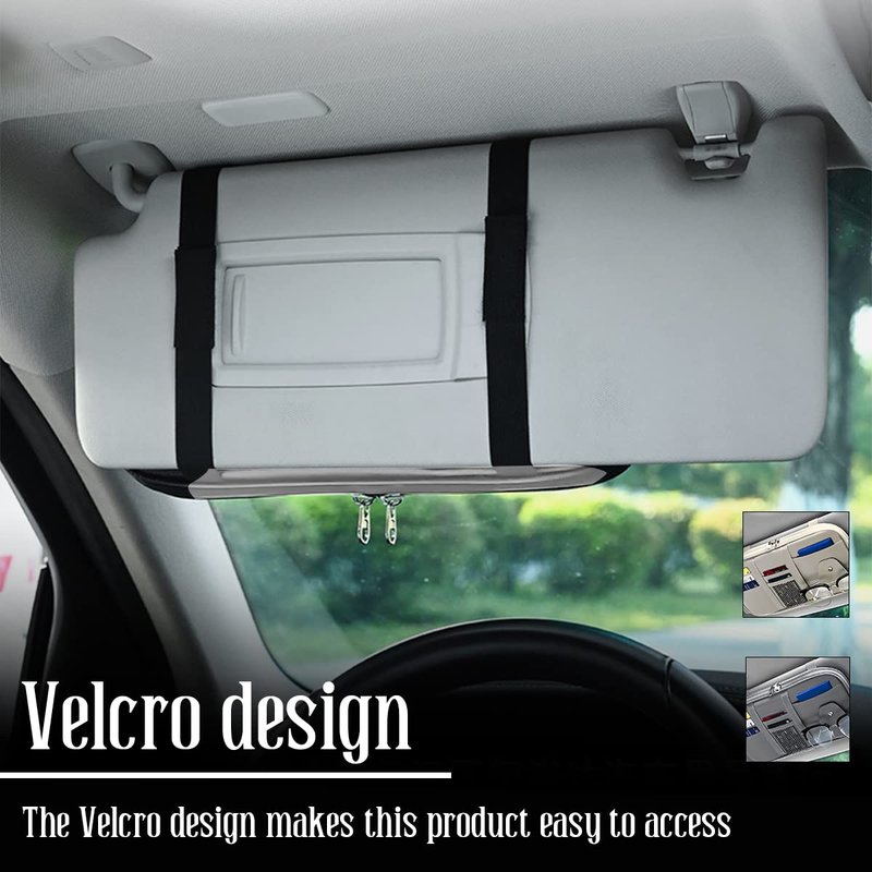 - 【Install & Remove】: The back of the visor organizer has two tough and flexible elastic straps with Velcro, so you can easily secure it to your visor. In addition, the elastic straps are freely adjustable, so you can remove it very quickly when you don't need it. It provides more storage space for the interior of your car and keeps it clean and organized.