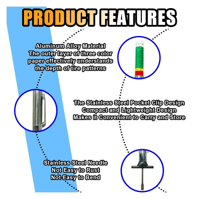 -This tire tread depth gauge is lightweight, portable, easy to install, requires no additional operations or tools to help you be more efficient and can be used cost-effectively without charging.