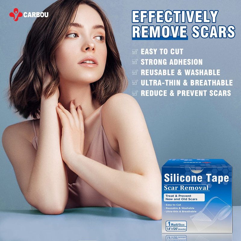 Carbou Medical Silicone Scar Tape (1.6"x 120"Roll), Soft Silicone Tape for Scars Treatment, Easy-Tear Silicone Scar Sheets , Professional Painless Scar Removal for Surgery, C-section, Acne, Keloid