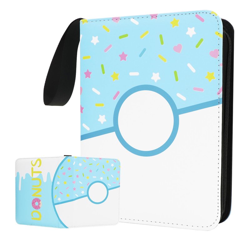 Card Binder Donuts TCGCard Holder Album Trading Cards Holder Zipper Binder for PTCG MTG YGO Collection (Blue Donut, 400 Pocket)